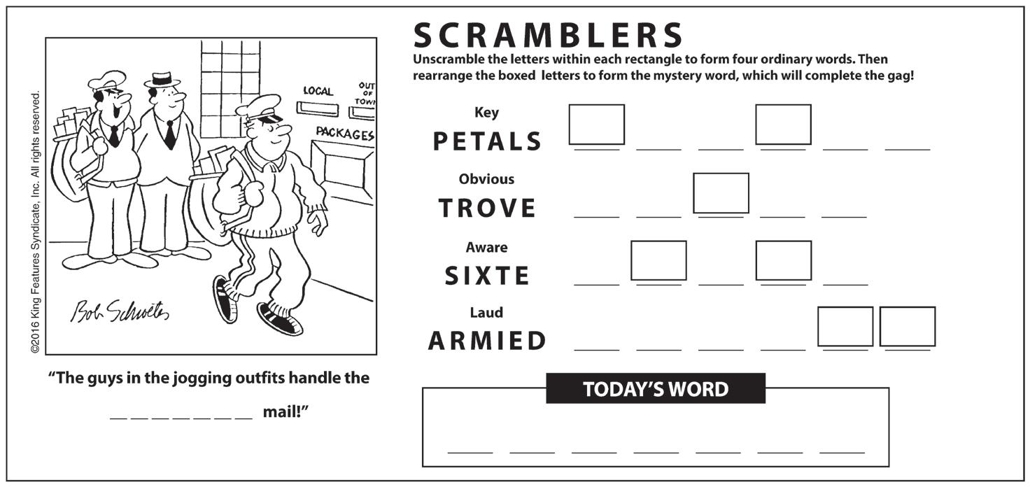 You’ll find our new Scramblers Puzzle on Page 12. Just send your completed puzzle to us at: