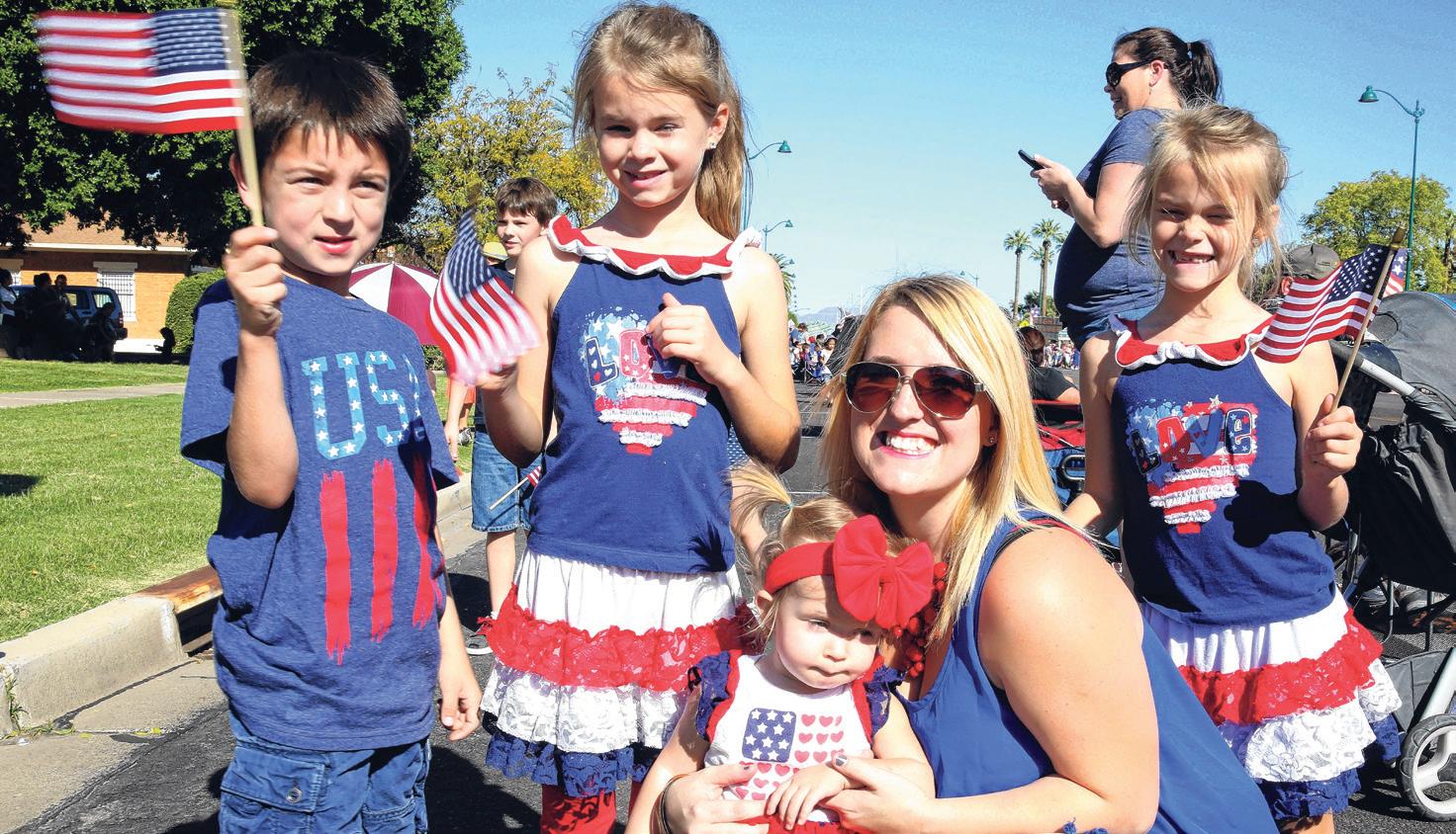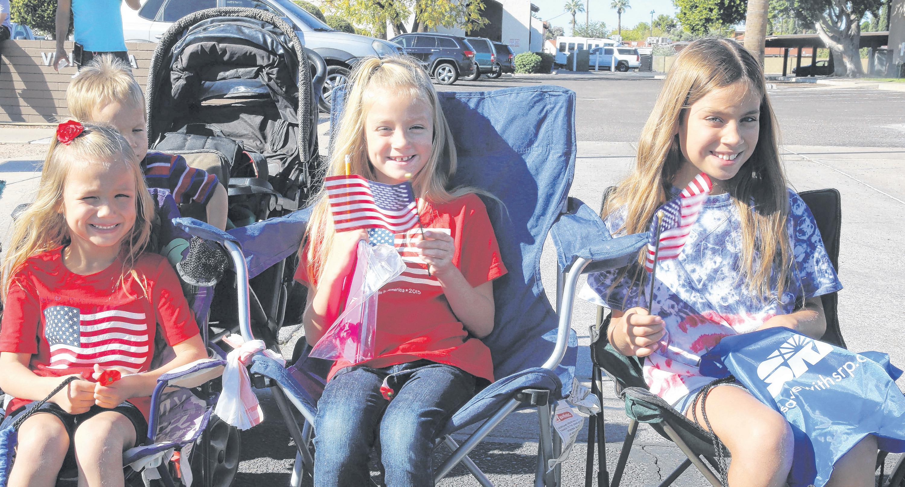 Giselle Decker, 5, Alyssa Decker, 7, and Savannah Decker, 9, prepare for the East Valley Veterans Day Parade.