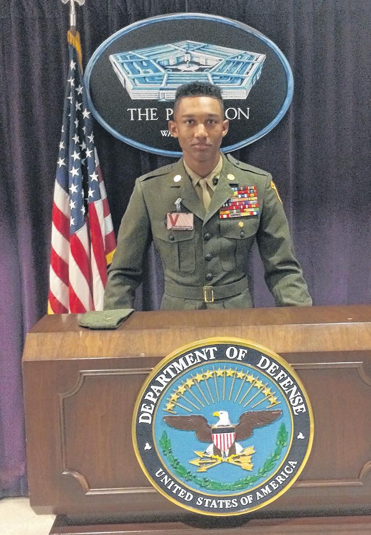 Young Marines Gunnery Sgt. Tyson Henry, a 15-year-old sophomore at Mountain View High, recently accepted the Fulcrum Shield Award at the Pentagon on behalf of his Mesa unit.