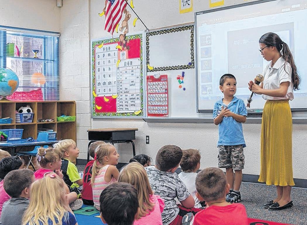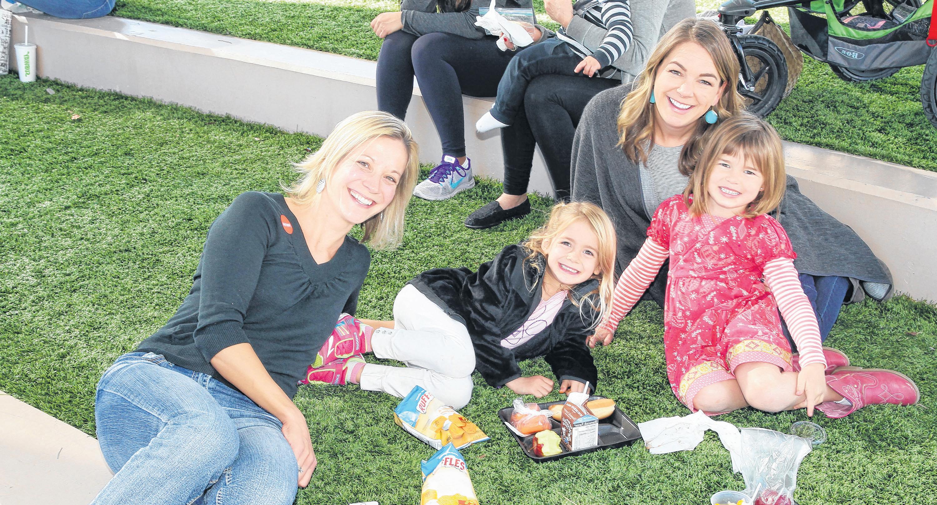 Michelle Nilsson, Alama Nilsson, 6, Sarah Webb and Mallory Webb, 6, enjoy lunch outside at Desert Canyon Elementary School’s Family BBQ.