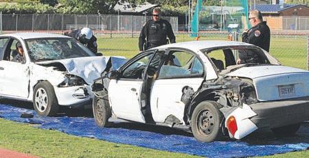During the demonstration, two cars were involved in a head-on collision with a pair of students in each car.