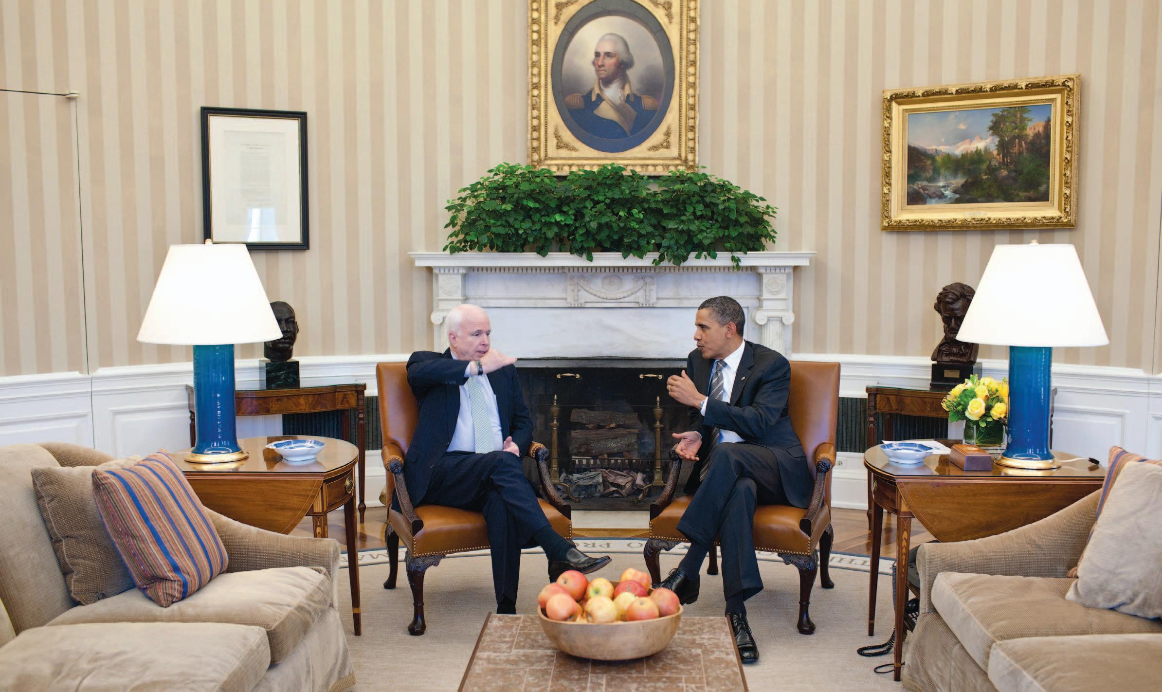 White House photo by Pete Souza President Barack Obama meets with Sen. John McCain, R-Ariz., in the Oval Office, Feb. 2, 2011.