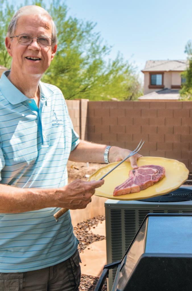 View photo by Jordan Christopher John Wachtman grills steaks Aug. 13 in his Goodyear backyard. Originally from California, John and his wife, Nancy, moved to the Estrella community in Goodyear about 12 years ago. The couple love gardening in the cooler months and plant an herb garden that goes hand in hand with John’s love of cooking.