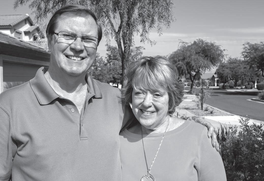 Fred and Jo-Ann Wordell pose Aug. 12 outside their Goodyear home. The couple, who retired to the Estrella community from Milwaukee in 2014, have lived through their first West Valley summer and said the warm winters make the triple digits worth it.