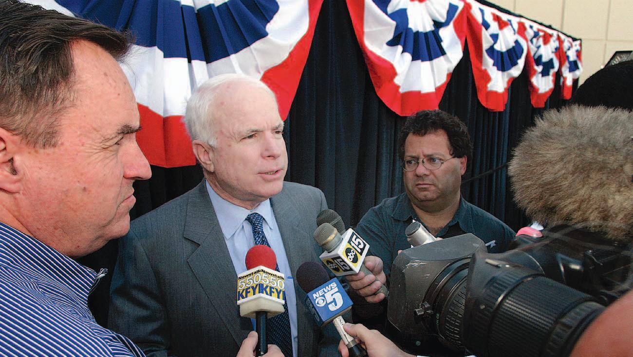 Sen. John McCain speaks with members of the media at an event in Goodyear.