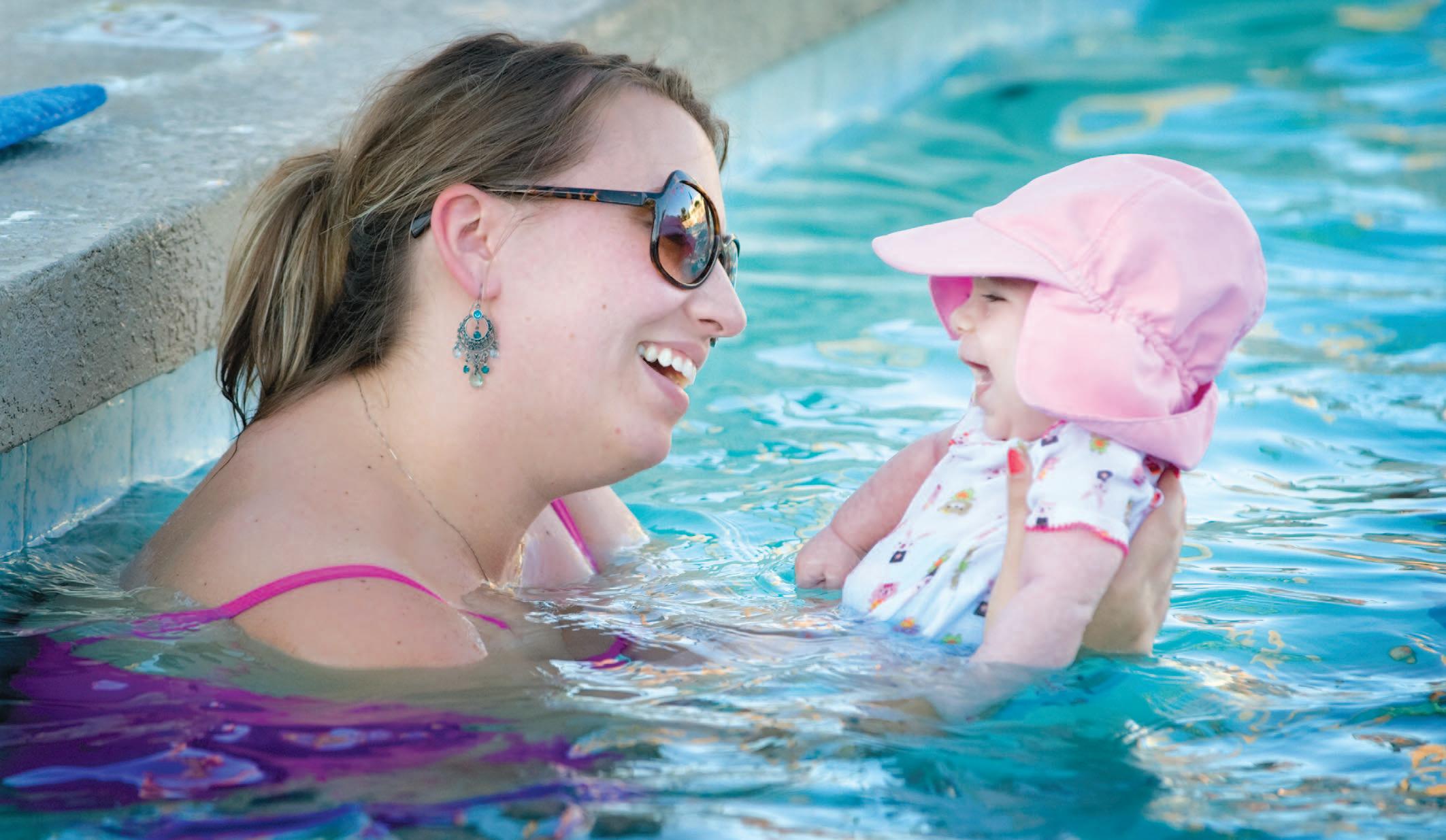 Monica Koby of Avondale introduces her 2-month old daughter Jade to the pool experience last summer at the Litchfield Park Recreation Center pool. The pool, at 100 S. Old Litchfield Road in Litchfield Park, opens for the season April 1.
