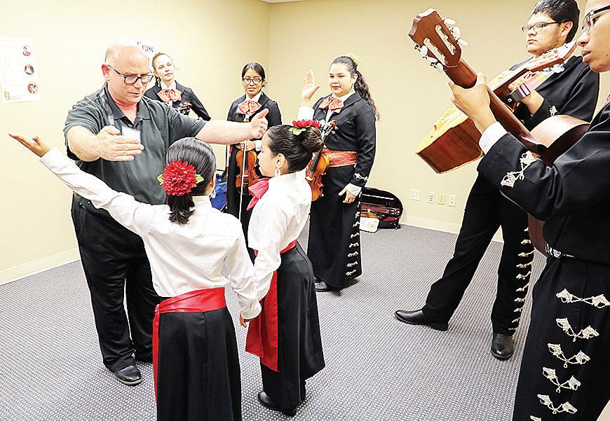 Several teenagers wearing mariachi trajes –uniforms of long black skirts and pants and vests bearing silver horse designs – played violins, guitar and guitarron at a ribboncutting and open house Feb. 4 at the nonprofit Desert Sounds Performing Arts on West 1st Street in Mesa. Audience members standing outside on the grass in front of the building beamed as two little girls dressed in trajes held hands and sang a song in Spanish. e students are part of Mariachi Sones del Desierto, which means Desert Sounds Mariachi. ey were part of a celebration of the group moving to a new, larger office space.