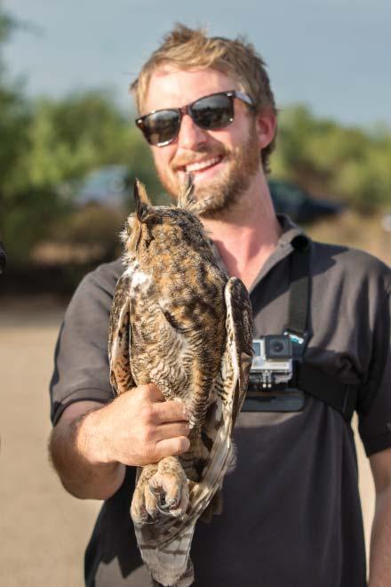 me to be more accessible,” Pearson said. “We get up before the sun gets up — it’s pitch black. I’m usually weighing birds, putting them on the scale, then cutting up meat for their rations. Hopefully, riding into the fields, the sun starts to turn red.”