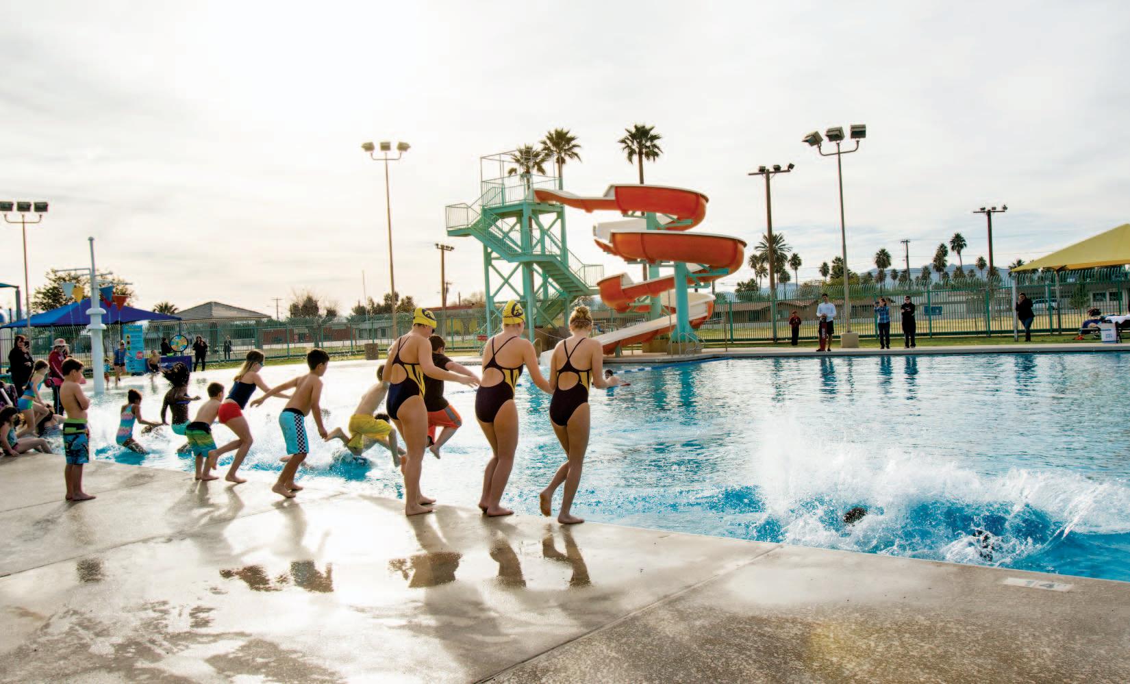 SWIMMERS BRAVE THE WINTERY WATER TEMPERATURES during Buckeye’s annual Polar Plunge Jan. 23 at the Buckeye Aquatic Center. Plunge participants raised money for youth sports scholarships. Everyone was treated to a hot pancake breakfast cooked up by the Buckeye Fire Department. To see all photos from this shoot, go to www.westvalleyview.com/pictures.