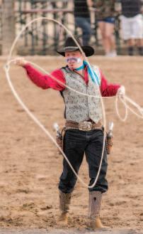 (Left) Fifth-generation horse trainer Rider Kiesner entertains the crowd with trick ropes and guns. Kiesner has been using trick ropes since he was 9 years old. Buckeye Days will continue this weekend with a cattle drive, parade and more rodeo events.