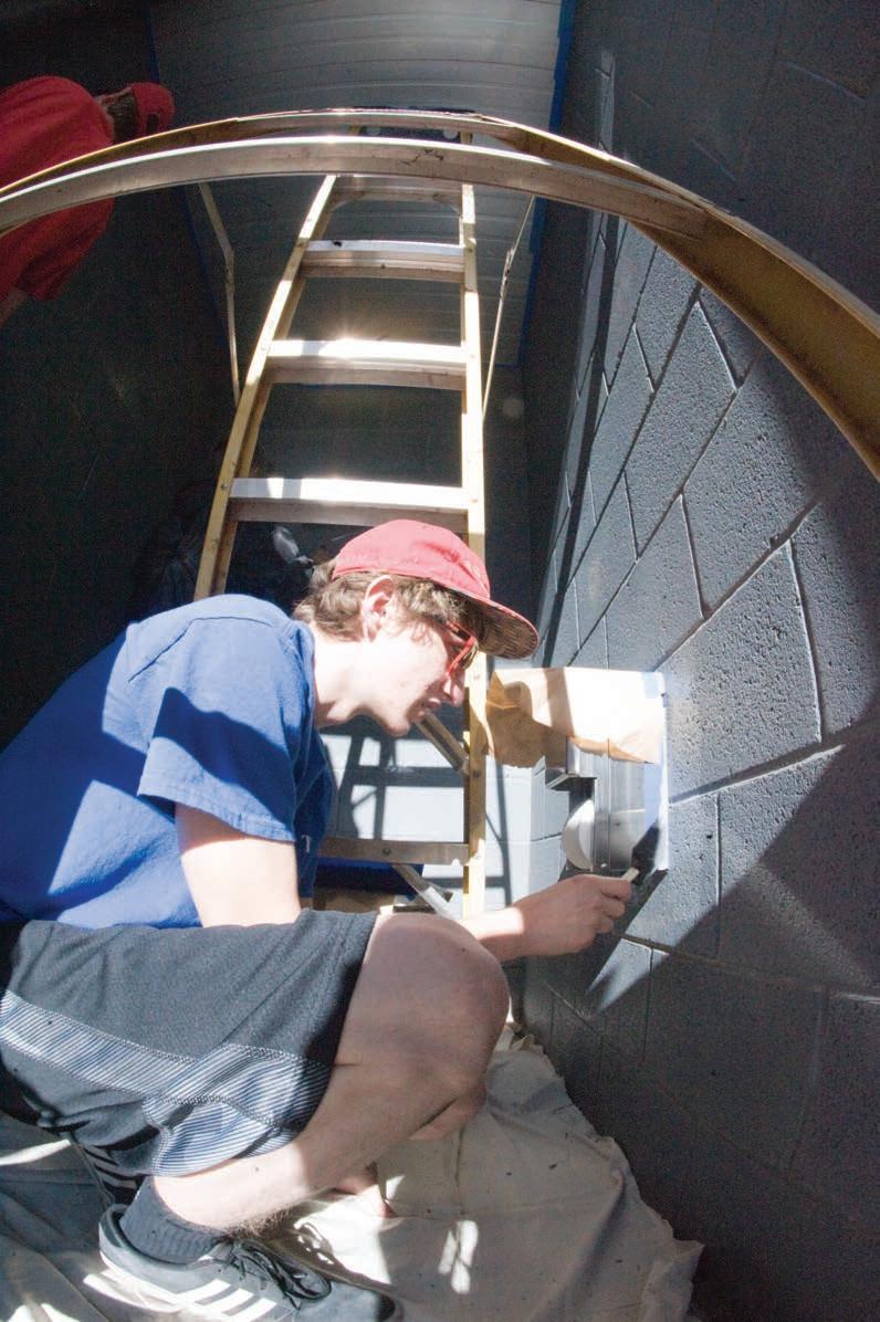 JONATHAN TUCKER of Avondale paints the trim around a toilet paper dispenser March 12 at the Goodyear Skate Park. The Troop 90 Boy Scout painted the skate park bathrooms as part of his Eagle Scout project.