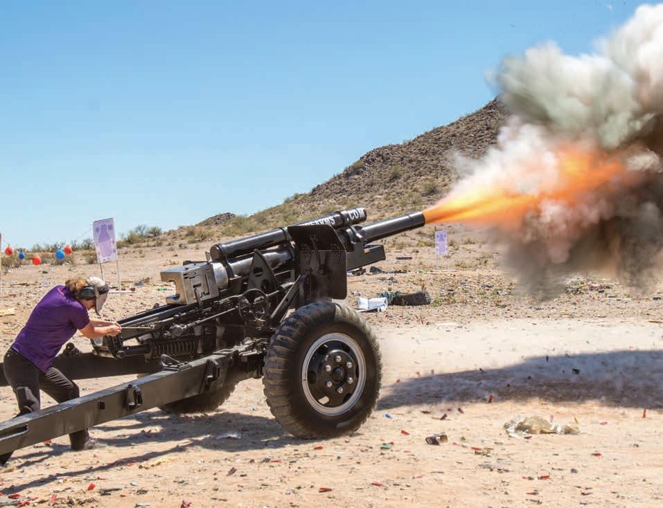 of The Well Armed Woman shoots a vintage World War II Howitzer