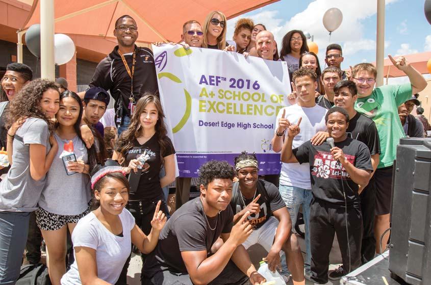 DESERT EDGE HIGH SCHOOL students and faculty smile May 6 as they are presented a banner for achieving an A+ rating from the Arizona Educational Foundation. The Goodyear school was one of three West Valley schools to earn the honor.