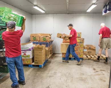 View photo by Jordan Christopher VOLUNTEERS Philip Ferrara, left, Jim Jarvis and Chuck Mitchell stock items in the newly installed walk-in fridge May 5 at the Agua Fria Food Bank in Avondale.
