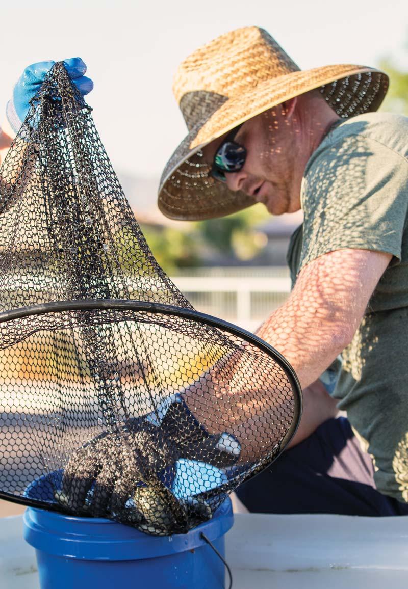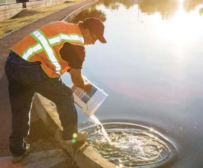 LES MILLER , Avondale Wetland Crew Public & Environmental manager, releases tilapia into neighborhood lakes May 24 in the Crystal Gardens community in Avondale. Tilapia helps combat algae growth, which increases as temperatures rise. To see all photos from this shoot, go to www.westvalleyview.com/pictures.