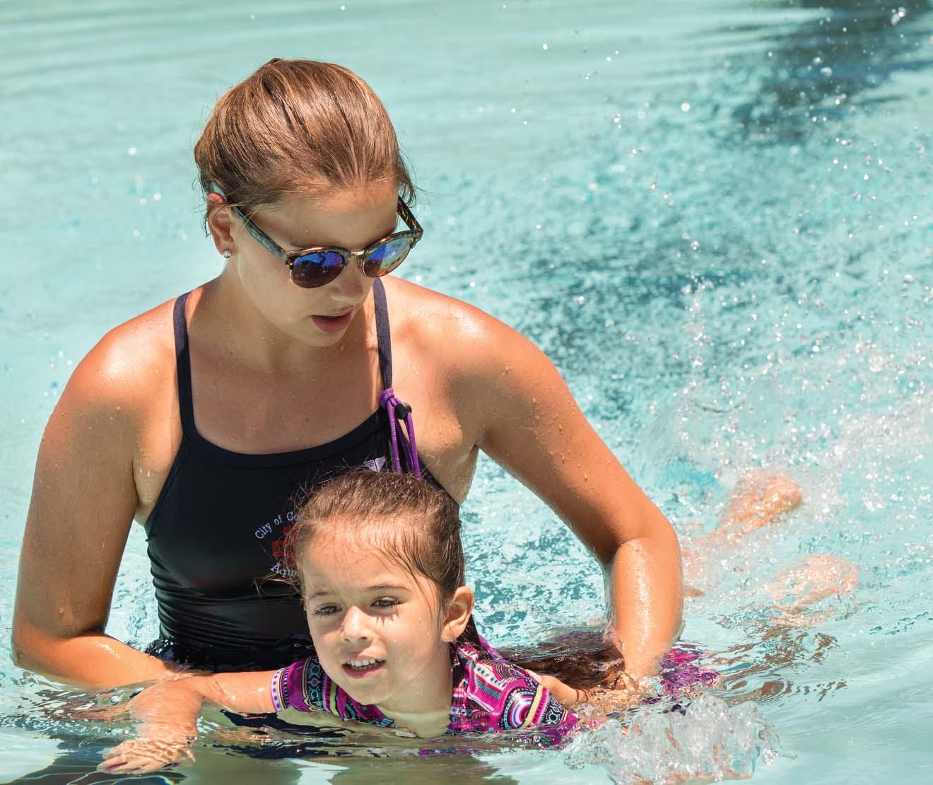SYDNEY WRIGHT, Goodyear lifeguard, works one on one with 5-year-old Zoe Silvas at a swim lesson June 2 at the Goodyear Municipal Pool. West Valley swimming pools have opened for the summer and are offering lessons. See the story on Page 9.