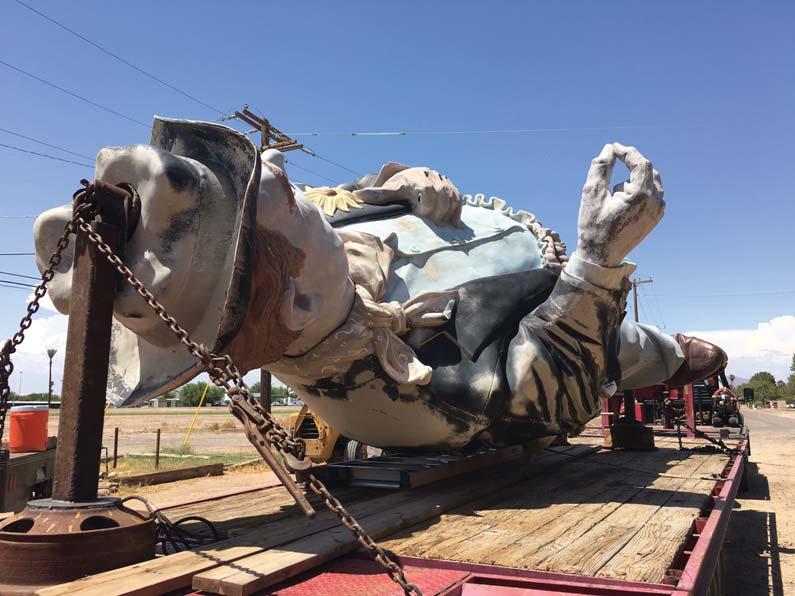 In July, the statue was removed from its perch in a dusty parking lot in front of a meat packing plant at East Monroe Avenue and North Apache Road.