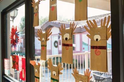 A window decorated with reindeer made from brown paper sacks signals that Christmas is approaching.