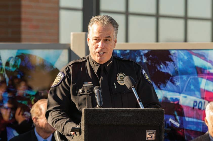 GOODYEAR POLICE CHIEF JERRY GEIER speaks Dec. 19 at the opening of the newly finished Goodyear Police Operations Building, 11 N. 145th Ave., Goodyear. The 21,000-squarefoot facility will house all police operations under one roof.