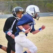 Coach Fred Mann runs Varsity Senior Myla Durling through a few blocking drills. GSN photos by Tim Sealy