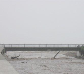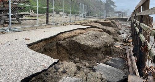 TOP RIGHT: Very high storm water levels overwhelmed a 24” culvert on Redwood Drive, Aptos BOTTOM (from left) Flooding at Redwood Drive and Campus Drive, Aptos • High storm water levels overwhelmed ditches on Redwood Drive. Orange sign “ROAD CLOSED” posted to warn motorists of downed tree blocking Redwood Drive and knocking out power for 12 hours. Residents cleared the tree to allow PG&E to restore power sooner. • Aptos Creek from Moosehead Drive on Dec. 31, 2022, when the winter storms began.