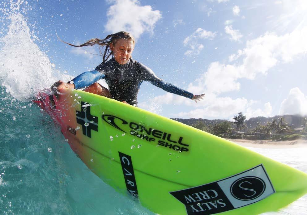The event in Sydney, Australia, was a surf contest focused on flight, with an emphasis on aerial maneuvers. Competitors in four divisions performed stunts in a wave pool. Hardy was in the 15-andunder girls division, one of eight girls chosen nationally to compete. It’s been only a year since she first tried surfing in a wave pool. She said Sydney was “super fun” and she got to talk to some of her heroes in the sport.