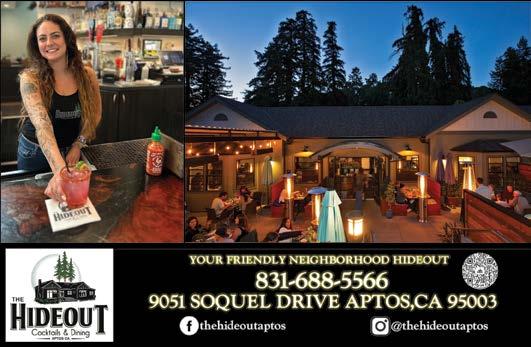 Watch the sunset from our cozy patio, relax near the replace for a cozy dinner, gather for a date night or a celebration in our dining room, or meet with friends at our high-top tables in the bar. Our libations menu o ers refreshing cocktails, a rotating selection of draught beers, and a robust wine list featuring some of the best wineries on the Central Coast and in the Santa Cruz Mountains.