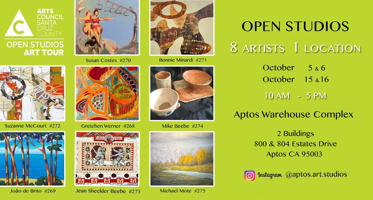 Art Studios will par ticipate in Open Studios, Oct. 9-10 and Oct. 15-16, giving people a chance to view eight artists at one location, the Aptos Warehouse Complex at 800, 802 and 804 Estates Drive, Aptos, from 10 a.m. to 5 p.m.