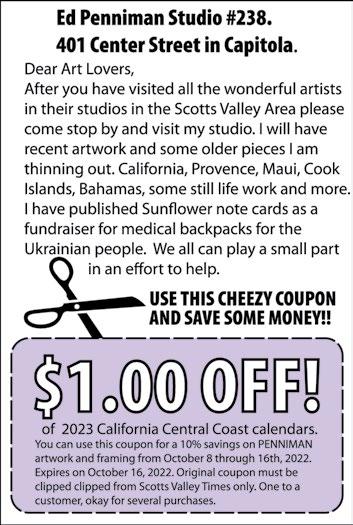The36th annual Open Studios Art Tour will take place as usual the first three weekends in October, bigger and better, featuring 321 artists across Santa Cruz County.
