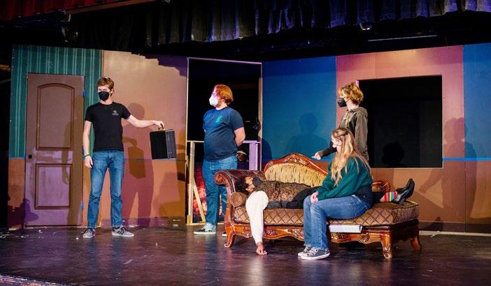 The stage, purchased from Arizona State University theater, framed by alluring red curtains. Professional lights. A touch of glamour, thanks to 250 blue plush seats from Bethany University, which came origi nally from Bellagio Casino in Las Vegas.