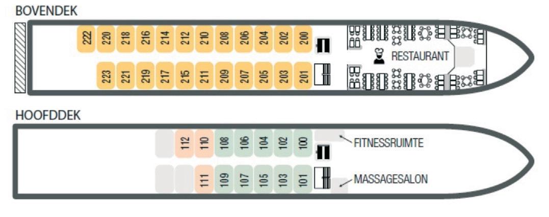 Max. toegelaten bagage: 1 reiskoffer per persoon 20 kg (afmetingen 60 cm hoogte/25 cm breedte/80 cm lengte) en 1 handbagage 6 kg. Let wel op! Een te grote handbagage gaat altijd ten koste van uw zitcomfort.