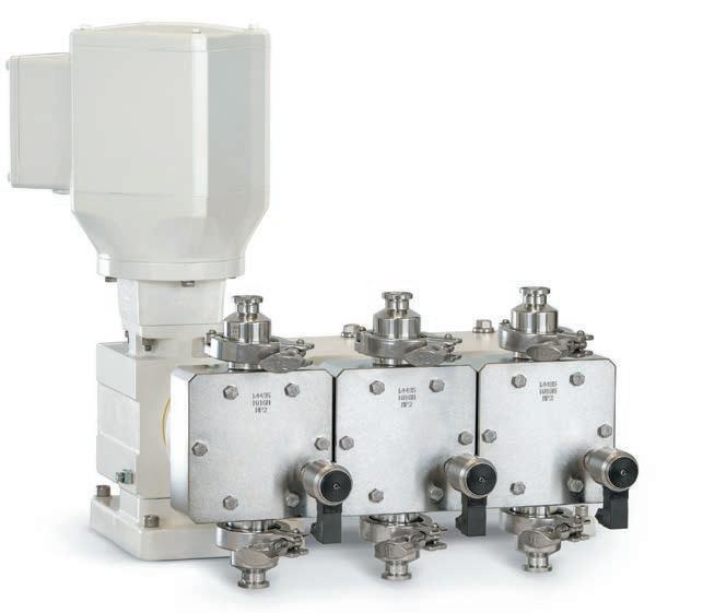 food. The ecodos series operates in the socalled low-pressure range, i.e. at a maximum discharge pressure of 20 bar, and with a flow rate of 16 to 1460 litres/hours. This requires pumps that not only allow precise control of the amount and time of addition, but also deliver the ingredients particularly gently.