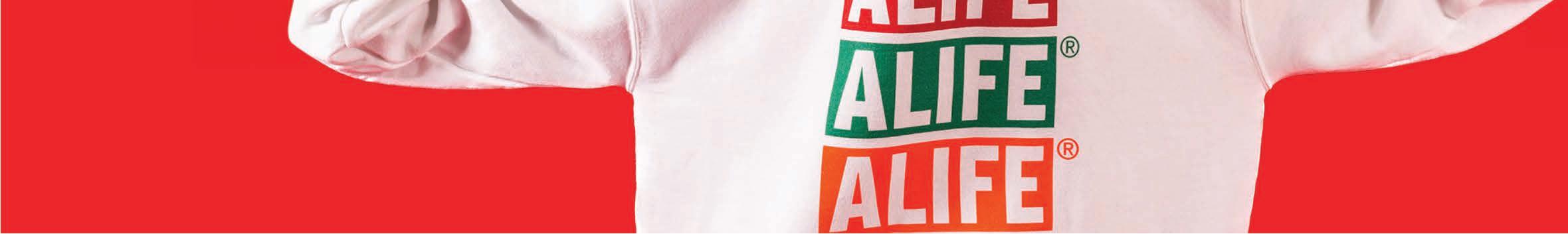 Can be used as frequently as the secondary logo when representing Alife brand, applicable to photographs, prints, clothing, merchandise, and most products depending on the background color.
