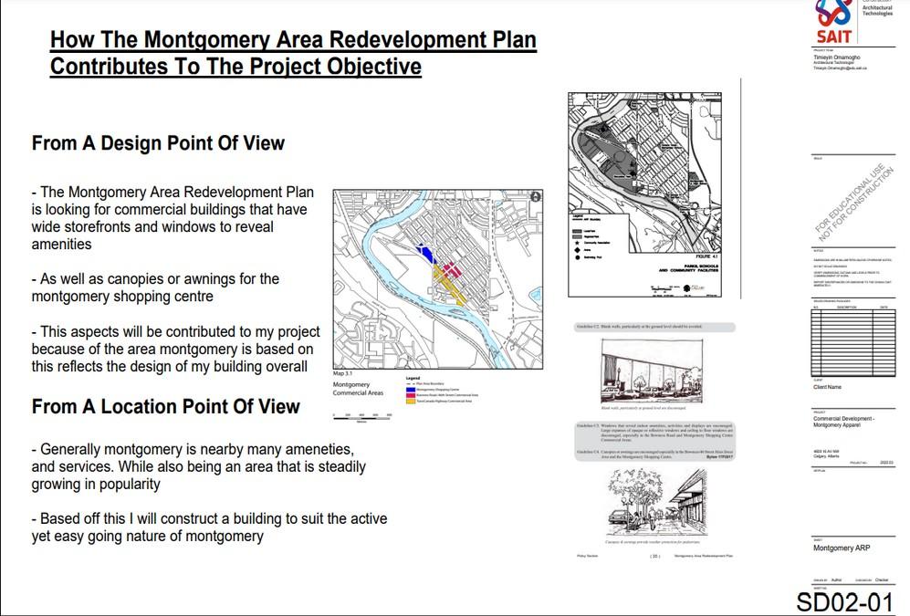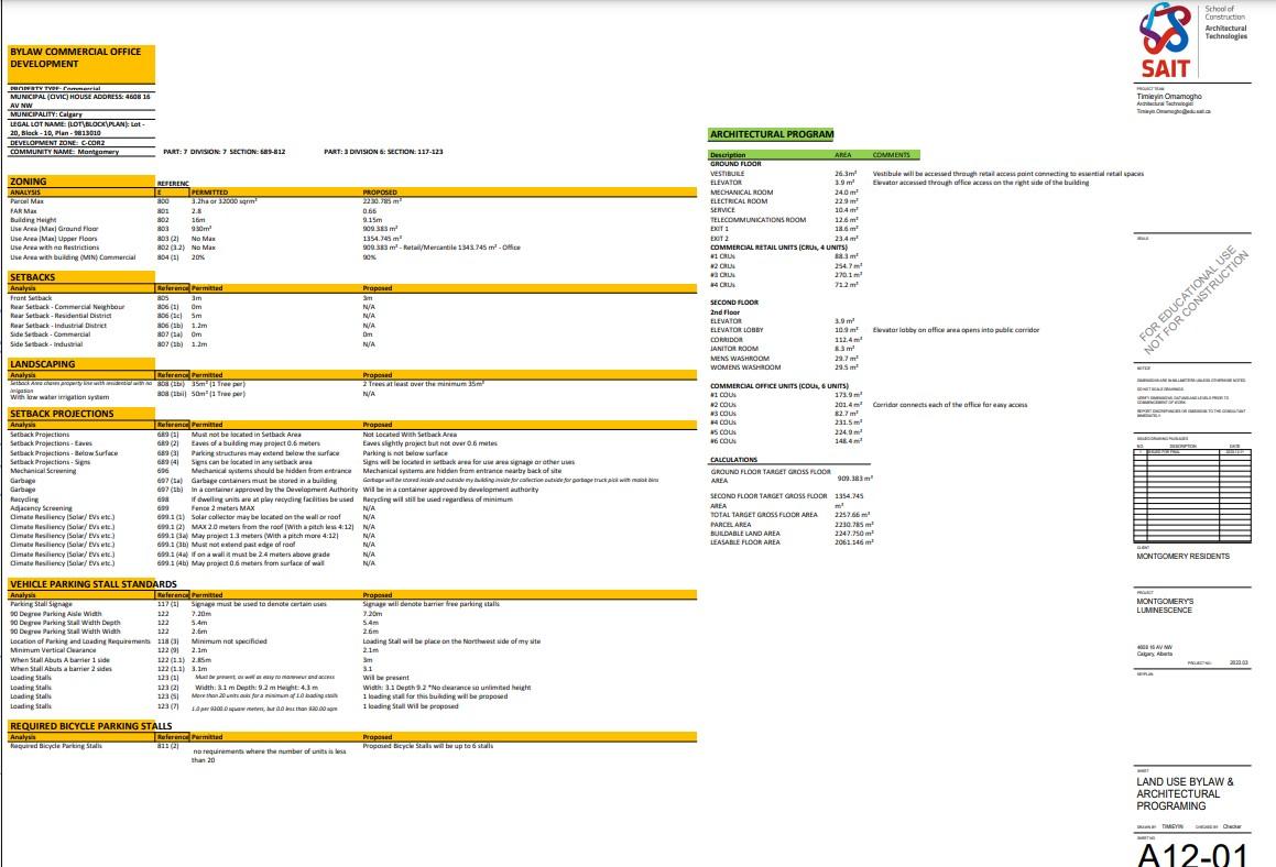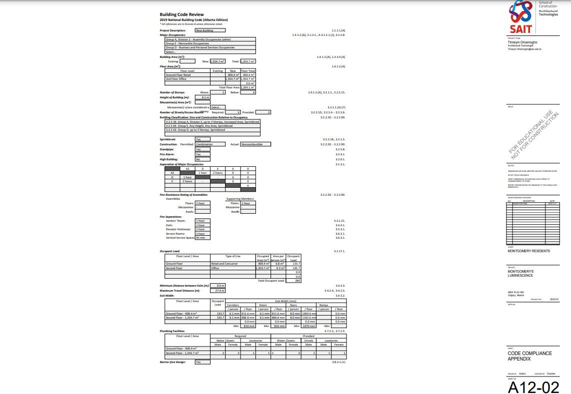 With my second semester at SAIT, I was able to go into deeper investigation to a larger building footprint. Allowing me to have experience with working on a Mixed-Use building. Mixed-Use, and commercial being the project types of interest for my career.