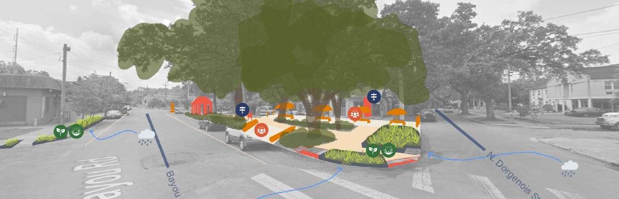 The N. Broad Corridor project integrates urban green infrastructure to manage stormwater and enhance the local ecosystem. It began with analyzing flood patterns using historical data and hydrological models to identify high-risk areas.