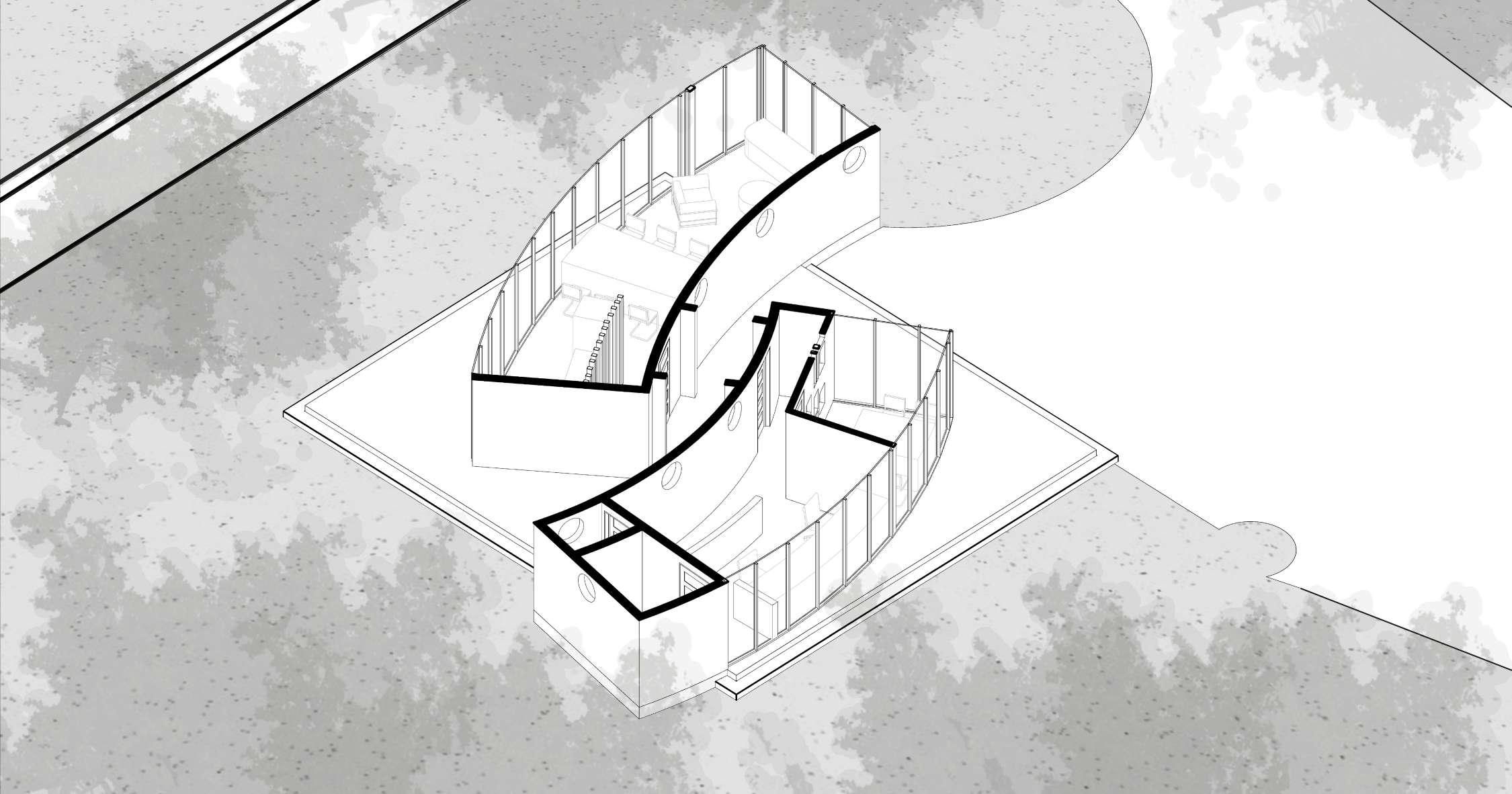 Crafted within a tranquil, imaginary hideaway, a geometrically-inspired work cabin emerges, its design dictated by an allocated extruded shape and a structured grid. Limiting its footprint to a maximum of 500 square feet and height to no more than 15 feet, the cabin caters to essential functionalities: