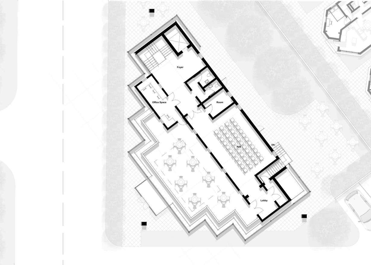 The project incorporates two geometric concepts from precedent studies, capturing an organized underlying grid. The exterior facades employ a proportional and regulatory strategy, establishing a harmonious relationship between the individual parts and the overall design.