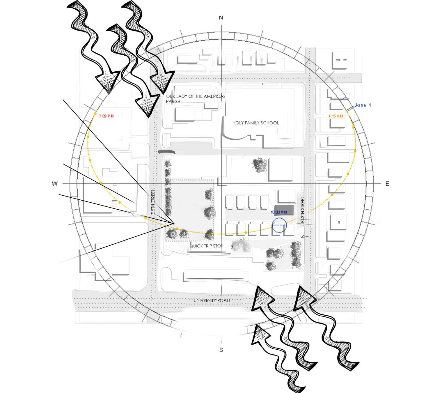 Using the analysis of the climatic factor of the site sun direction, wind pattern and noise pattern played a major role in space planning, position and the zoning of each section of the development.