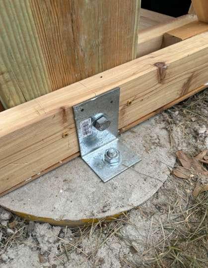 The structure comprised of wooden frame made from 2”x 6” wood member in a truss like structure with angle greate than 45 degrees. The structure is attachced to a 12” diameter concrete tube, 24” into the ground.