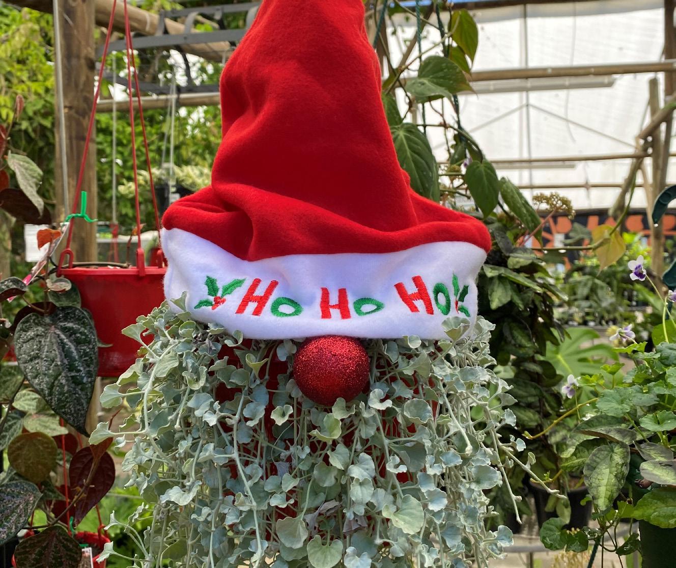 DICHONDRA SANTAS! Bring some fun to your Christmas decor with these Dichondra Santa hanging baskets! Includes a removable hat and nose. 180mm