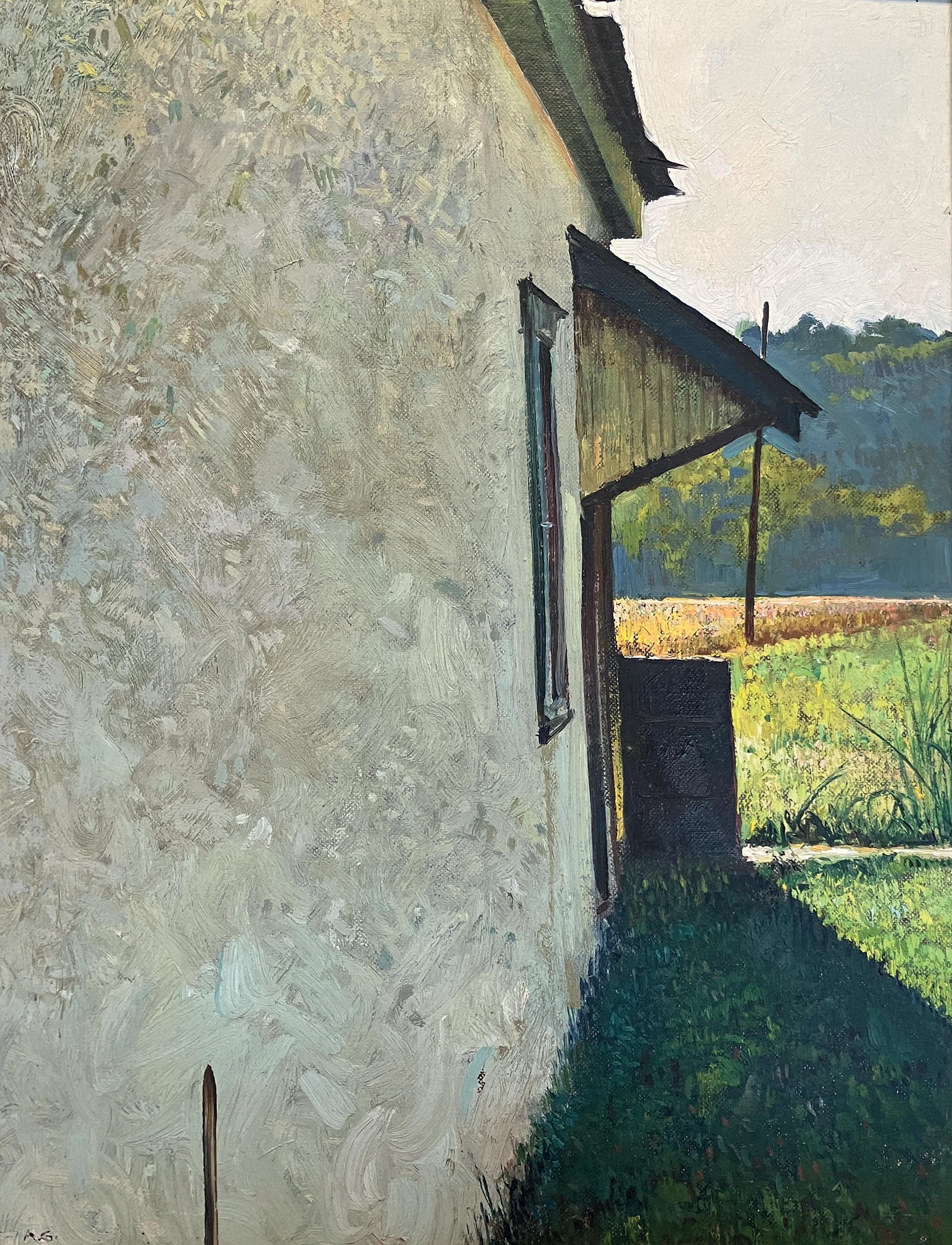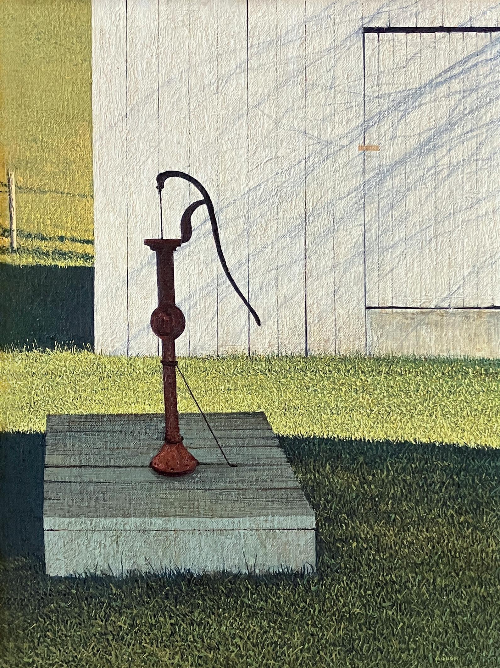 Both artists completed their education at fine art schools: The American Academy of Art in Chicago, and Art Students League in New York, respectively. Alan’s subjects have been the urban and rural landscape. Initially, his painterly urban works with richly brushed scumbling of paint were influenced by the art of such masters of vital brushwork and the depiction of everyday life and dwellings in New York as George Bellows, John Sloan, and George Luks. Alan’s landscapes since the mid 1970’s, with a few earlier exceptions, have been more tightly rendered with affinities to the egg tempera paintings and finely articulated drybrush watercolors and drawings of Andrew Wyeth. Alan shared Wyeth’s interest in the details and underlying structure of the American landscape and the dwellings and barns of the perseverant farmers who toiled the land and bonded with it. He favors the sparse, subtly toned and quietly hued late fall, winter and early spring landscapes. However, his late spring, summer, and early fall paintings have more vibrant color harmonies, yet still have a well-defined structure.