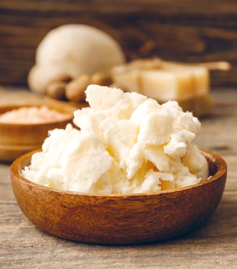 Shea-smør (Karitésmør): Brukes i alt fra ansiktskremer til leppepomader, kroppskremer og hårpleieprodukter
