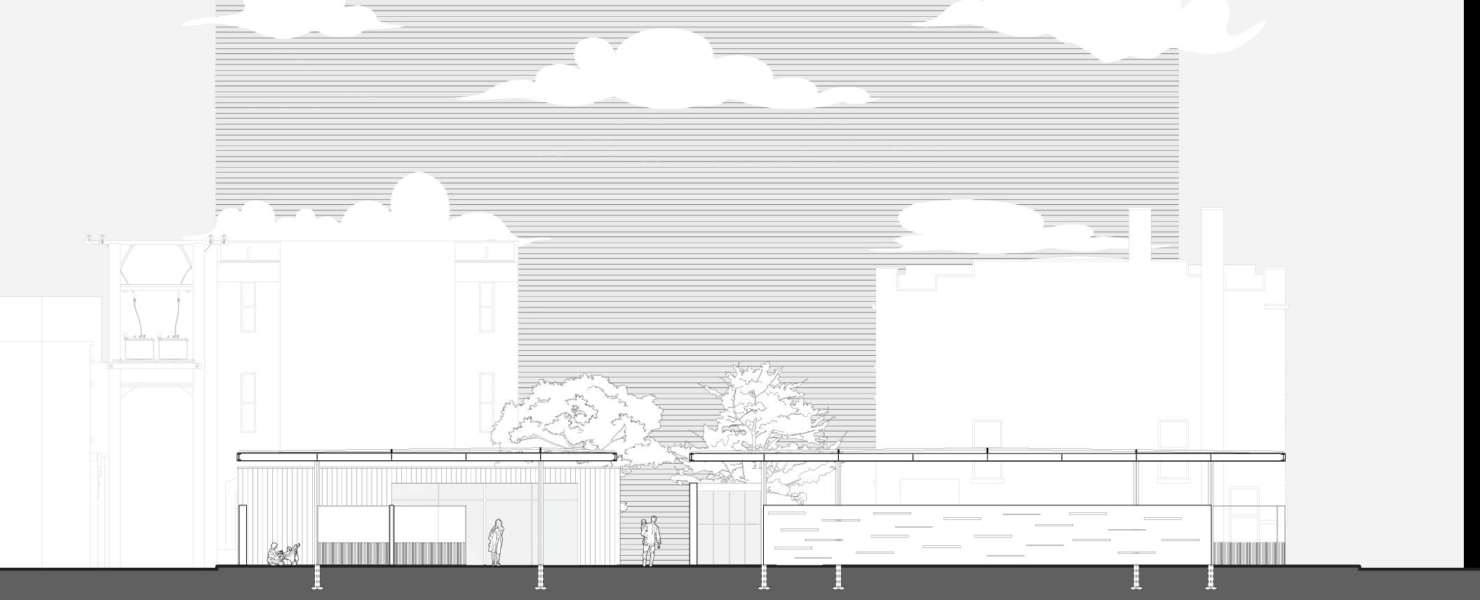 Refining the identity of a fragmented streetscape through contemporary ideation of a circulation spine that maintains an integral connection to the city park.