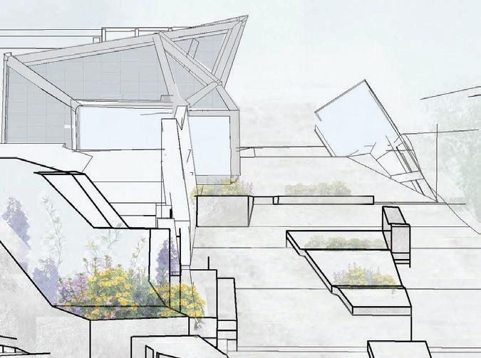 Outdoor Community Alcove Fourth Floor 1/32”=1’ View From Flexable Resturant Space Ground Floor 1/32”=1’ Lobby 1 Demonstration Kitchen 2 Storage 3 Community Areas 4 Outdoor Ampitheatre 5 Retail 6 Auditorium 7 Dishes 8 Classroom 9 Lobby 10 11 12 Library Lounge 5 View from community alcove 7 8 9 10 11 12 Eroding The Implied Volume Planar interuptions bring in light and further complicates the interior and exterior Community 5 Outdoor Community Alcove Fourth Floor 1/32”=1’ View From Flexable Resturant Space Ground Floor 1/32”=1’ Lobby 1 Demonstration Kitchen 2 Storage 3 Community Areas 4 Outdoor Ampitheatre 5 Retai 6 Auditorium 7 Dishes 8 Classroom 9 Lobby 10 11 12 Library Lounge 2 5 View from community alcove Section A 1/16”=1’ 7 8 9 10 11 12 Flexable Restaurant Space