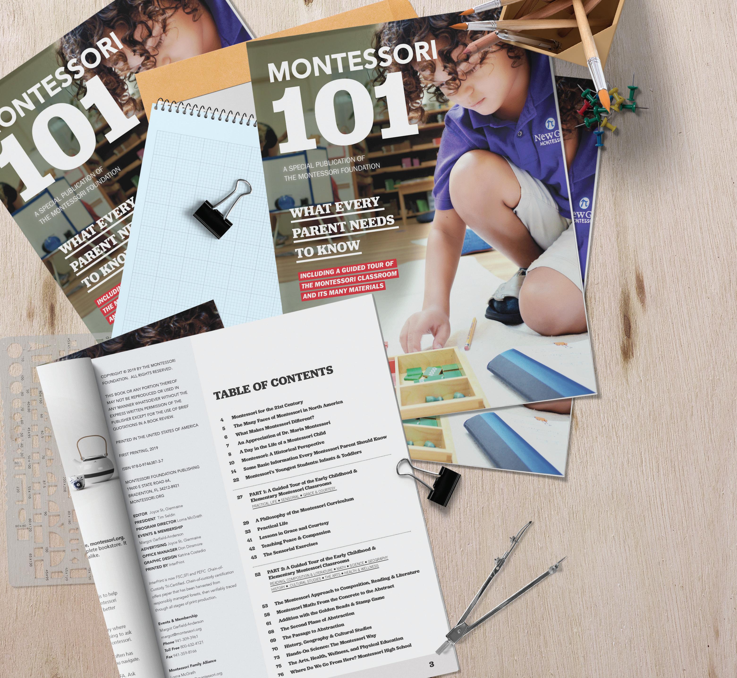 This 80-page full-color publication is a wonderful resource for anyone seeking to demystify Montessori. It addresses topics such as the history and philosophy of Montessori; offers a guided tour of the Montessori classroom; and serves as an illustrated guide to dozens of wonderful Montessori materials. This mini-encylopedia of Montessori is newly redesigned and contains new sections on Infant/Toddler and Montessori Secondary programs. It is a must-have resource for anyone interested in Montessori, and one that parents will surely refer to throughout their child’s Montessori experience.