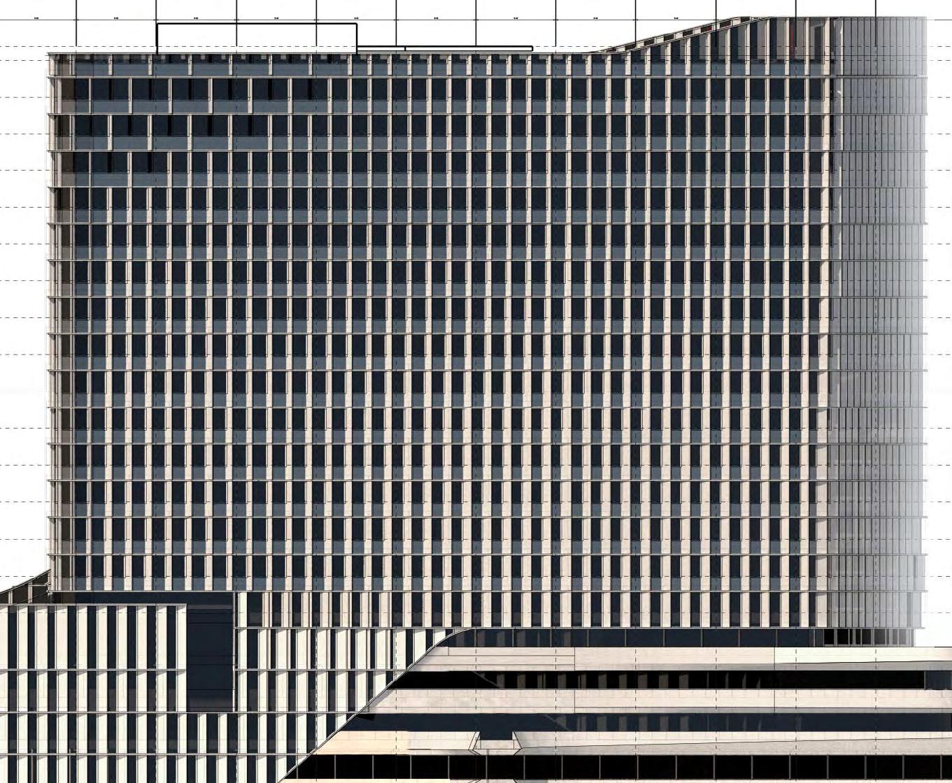 The computation of the over 1,500 modules incorporates solar analysis to create a cloud-like effect that reduces the building’s mass and provides shading. This provides the user with optimal sunshine and temperature conditions.