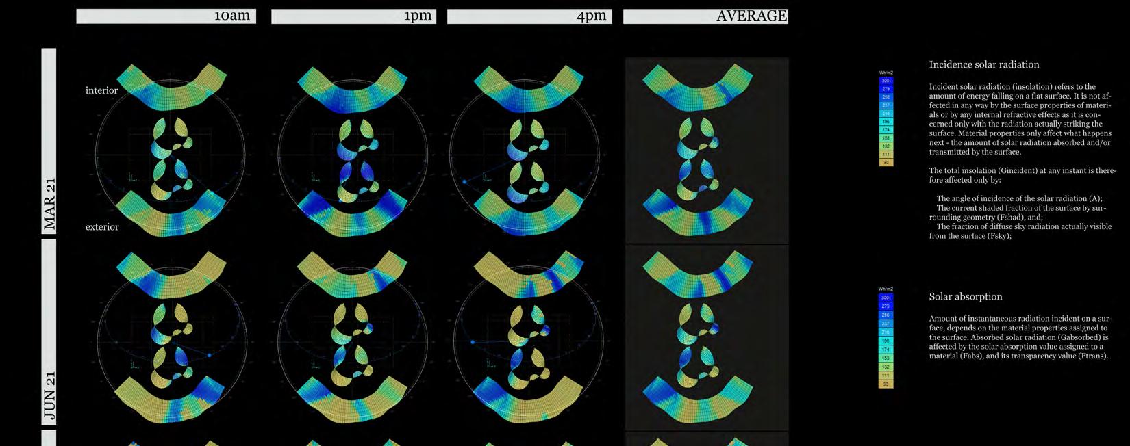 Using solar analysis to perform formal folding, this pavilion explores the relationship between geomteric form and solar characteristics. Made using Rhino GH