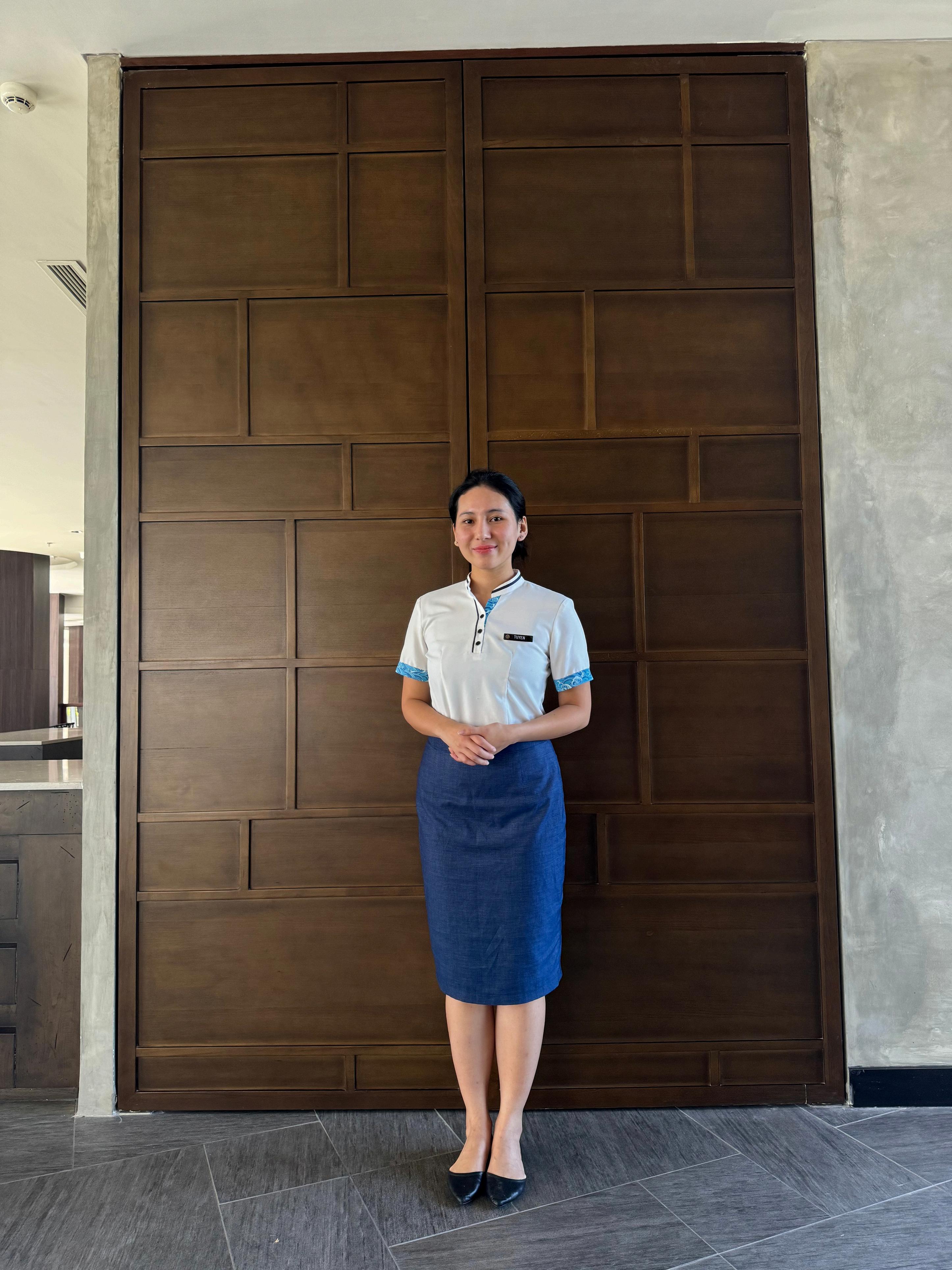 She has strong English language skills, which are vital in the international hospitality industry Tuyen not only communicates fluently but is also adept at listening and understanding complex requirements from both colleagues and clients