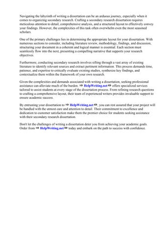 By entrusting your dissertation to ⇒ HelpWriting.net⇔, you can rest assured that your project will be handled with the utmost care and attention to detail. Their commitment to excellence and dedication to customer satisfaction make them the premier choice for students seeking assistance with their secondary research dissertation.