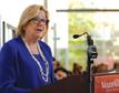 The Hon. Margaret McCain (’54) addresses the crowd on behalf of benefactors of the Purdy Crawford Centre for the Arts.